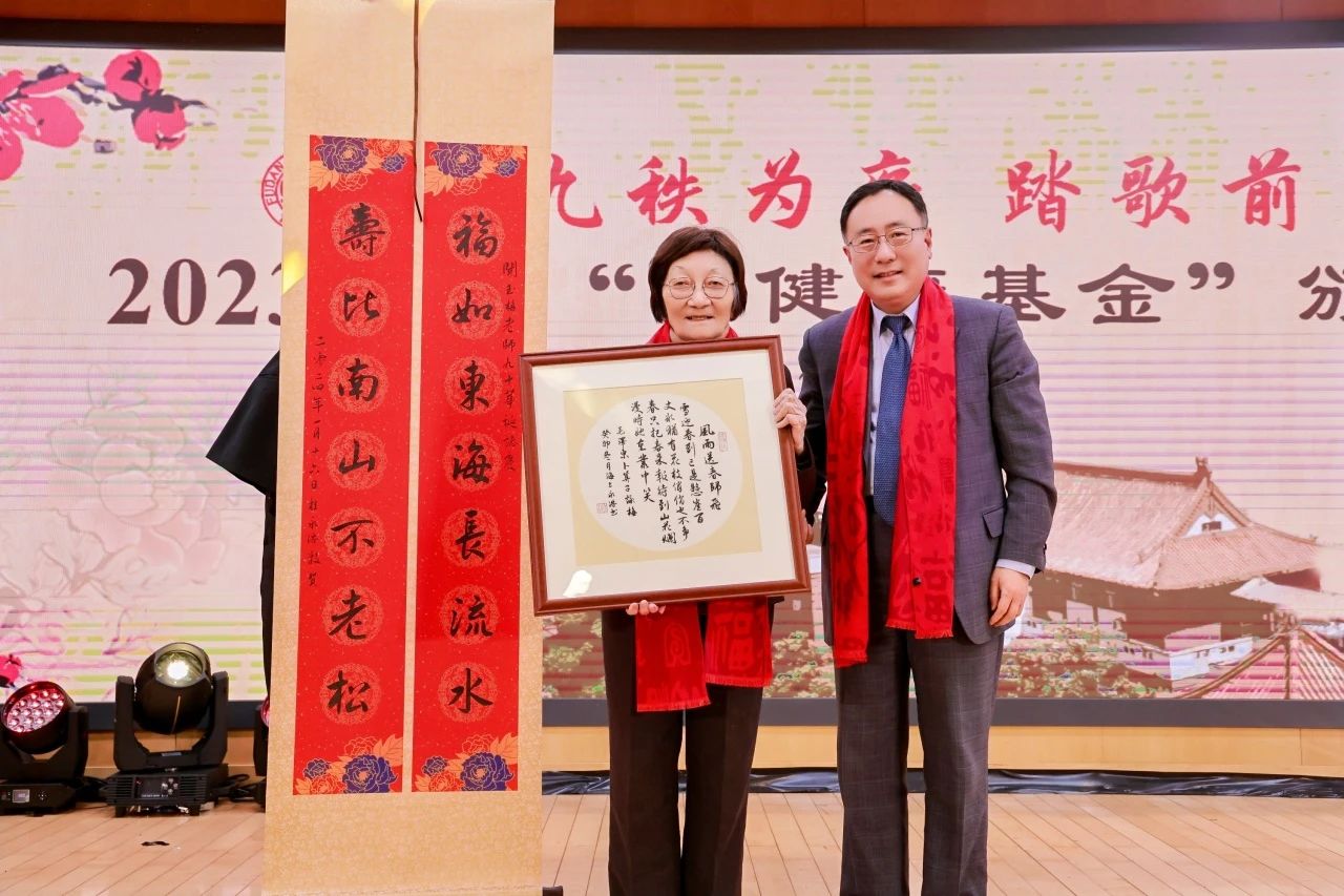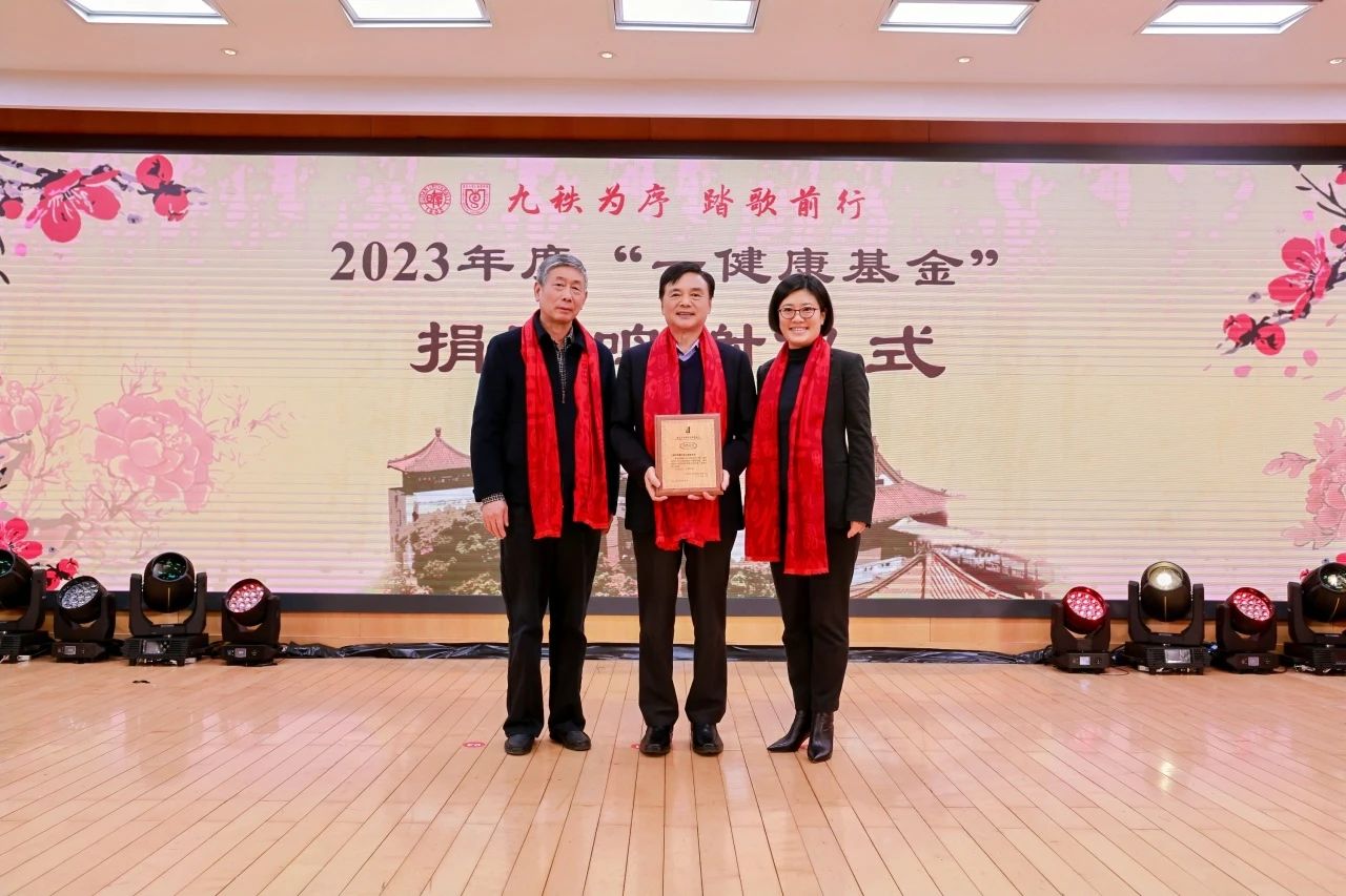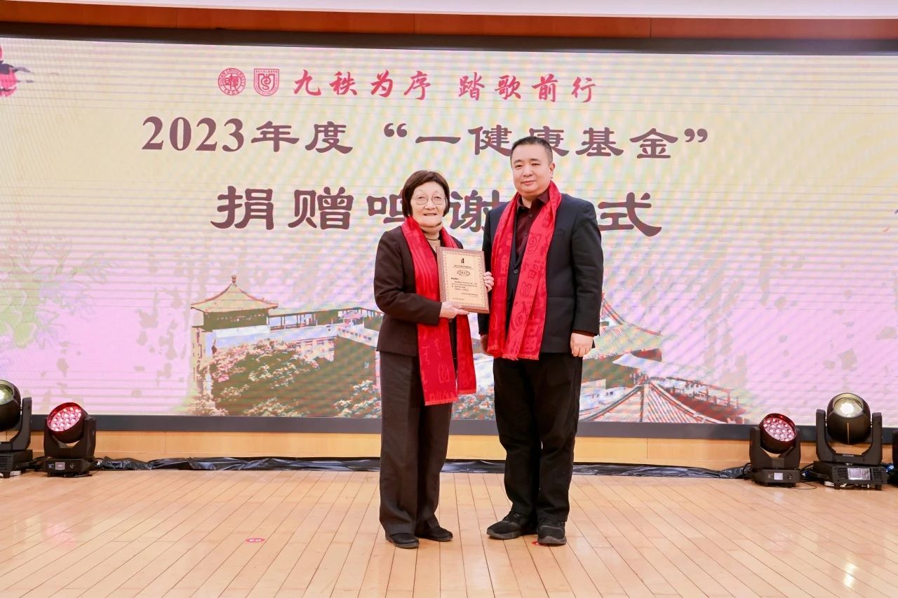 多年来,闻玉梅默默无闻地为基金持续注入善款,在刚刚过去的2023年,她又用自己积攒的50万元设立“一健康”老年医学项目。现场,金力向闻玉梅颁发捐赠鸣谢牌。