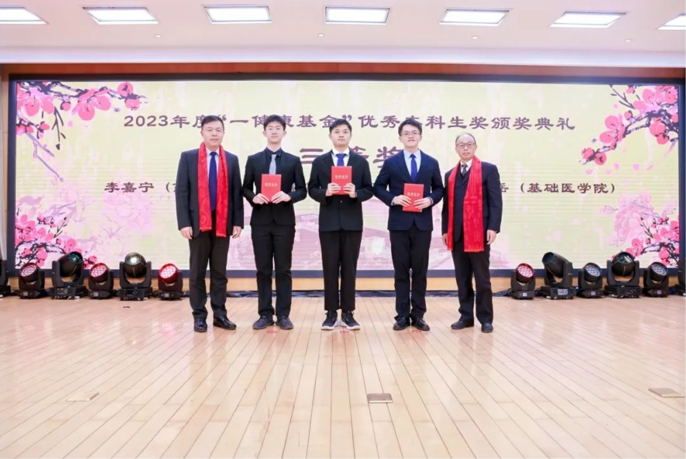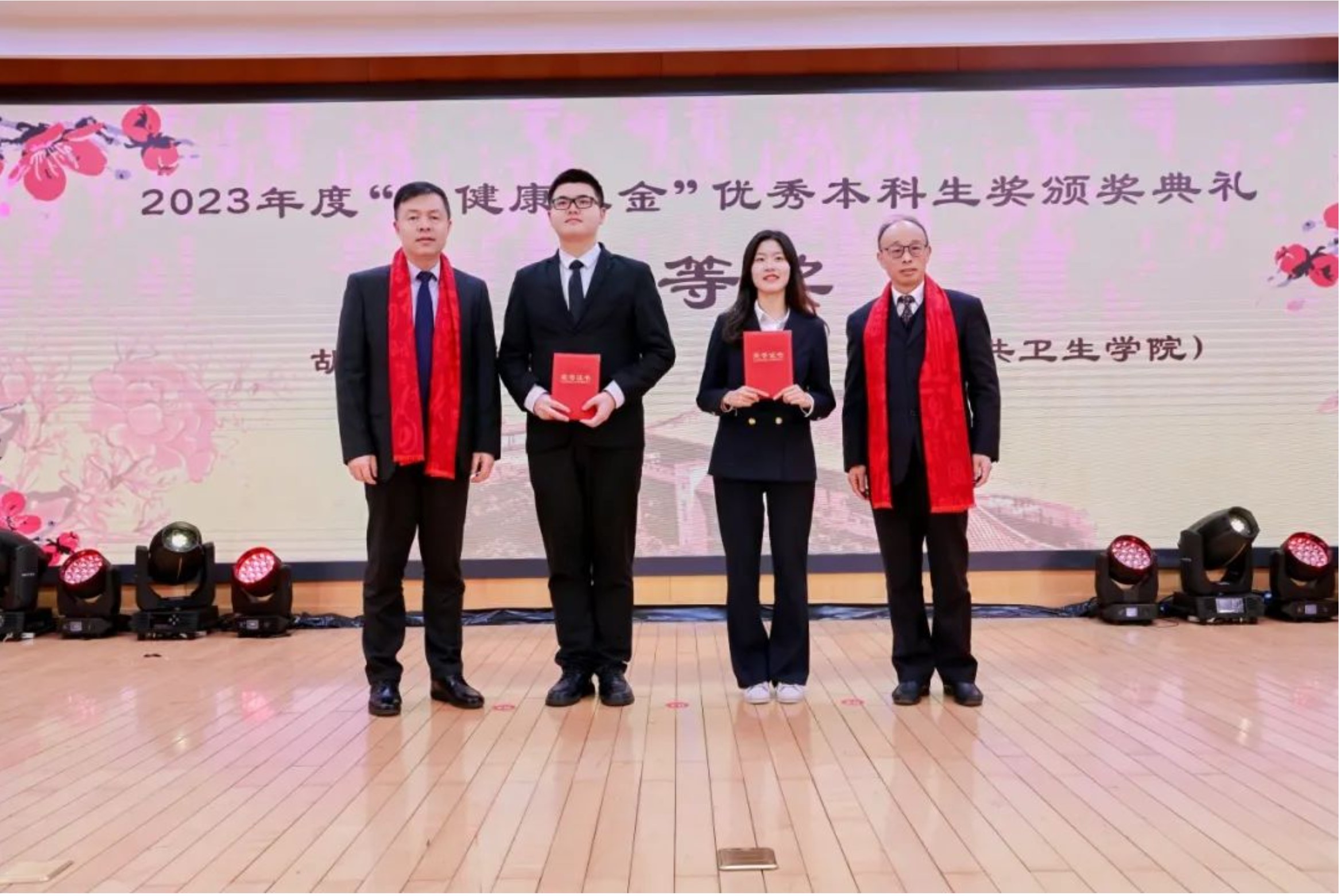 复旦大学上海医学院党委副书记杨伟国,纪委书记、党委副书记胡华忠为优秀本科生奖颁奖
