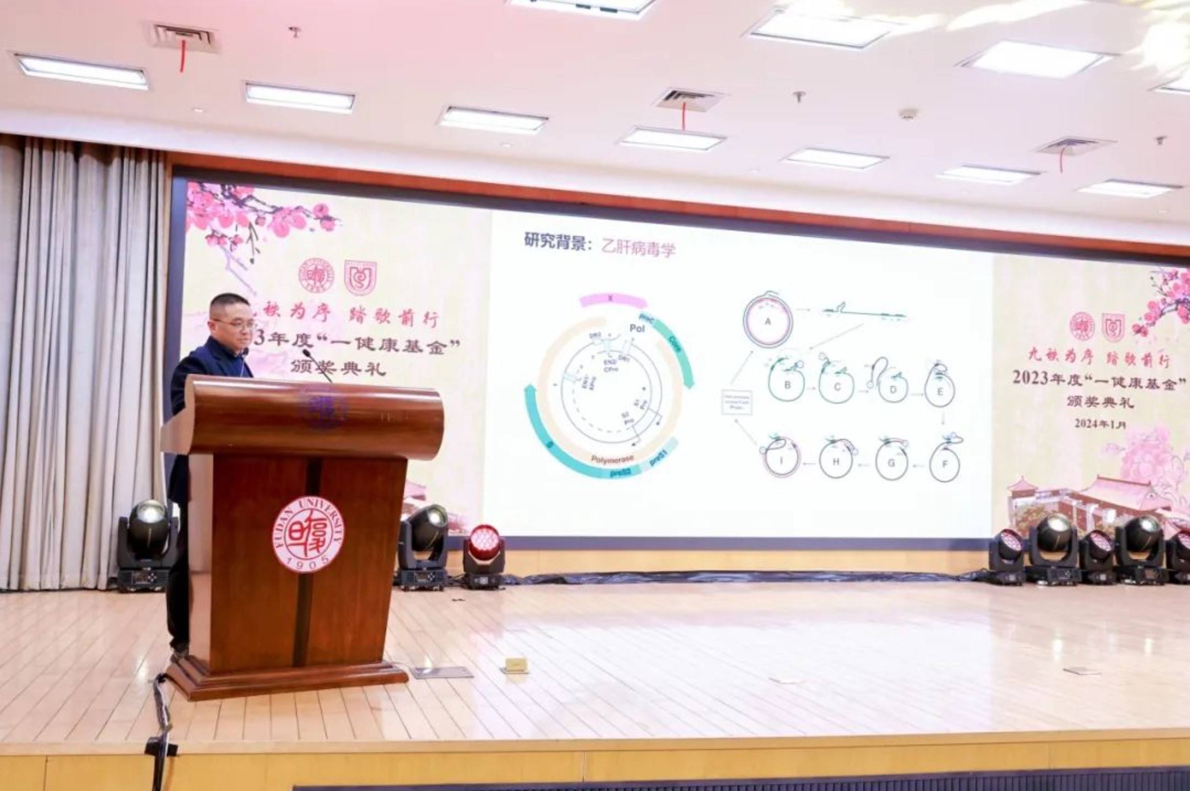 随后,2023年度“一健康基金”优秀本科生奖、优秀研究生奖、病原生物专业新生奖、《微生物与感染》优秀论文奖、优秀教师奖颁奖仪式举行。上海医学院副院长吴凡宣读2023 年度“一健康基金”获奖名单。
