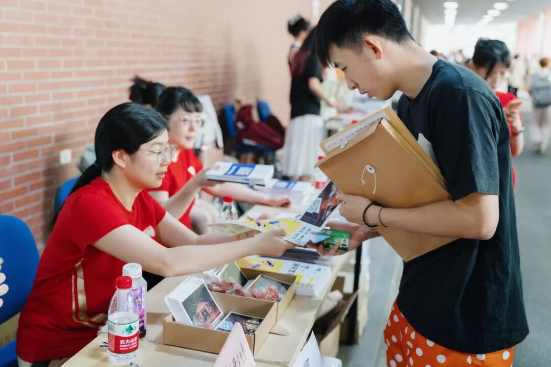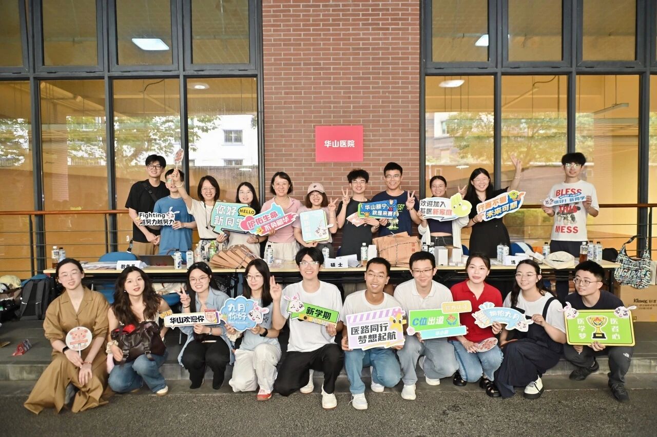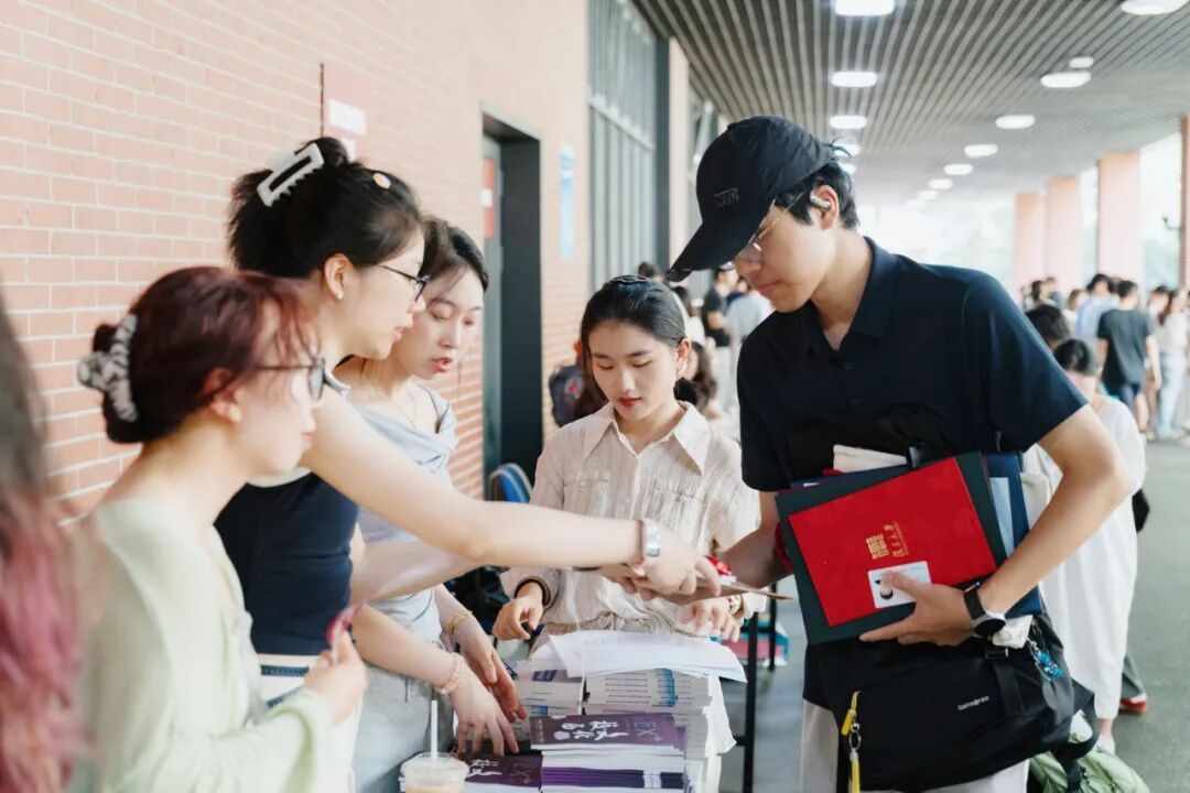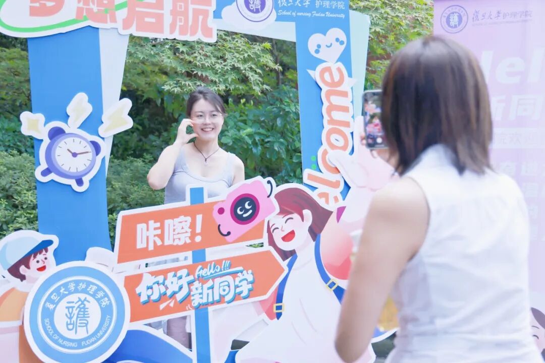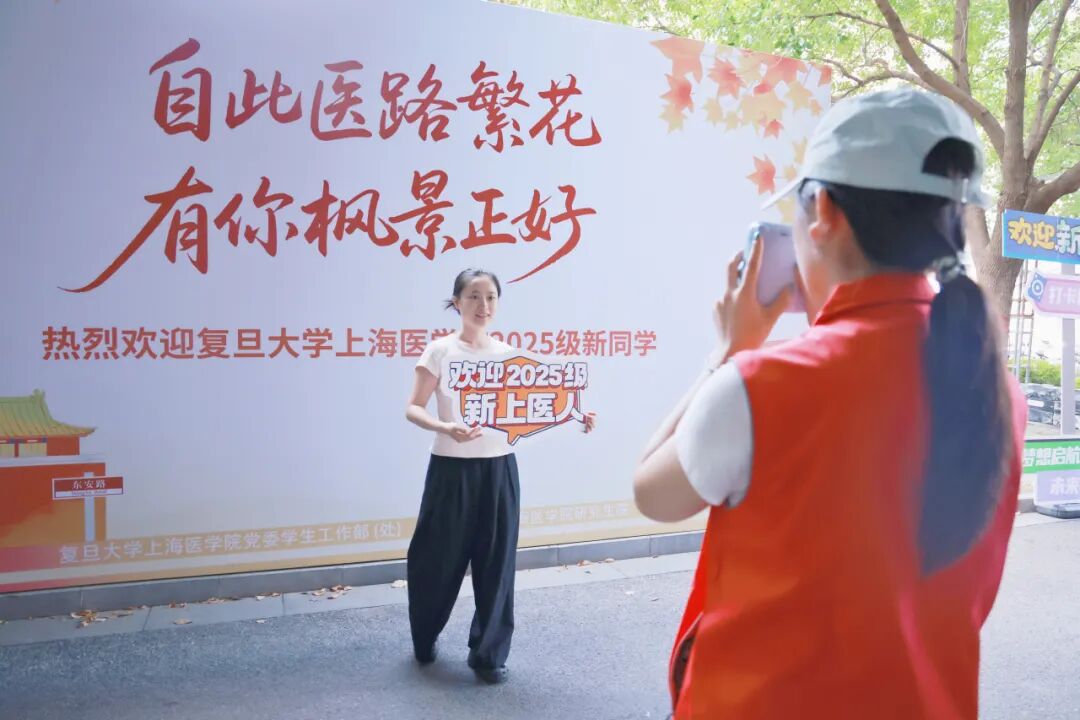 有你“枫”景正好,自此医路繁花。彩旗轻扬,展板列阵,报到点前,身着红、蓝马甲的志愿者穿梭其间,拍立得拍照打卡、照片实时直播、定制帆布袋与各类新生文创……初秋的阳光里满是医学新生的朝气。