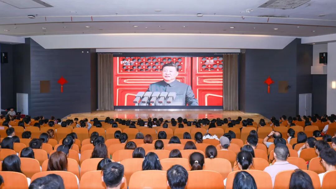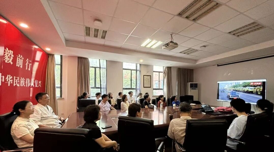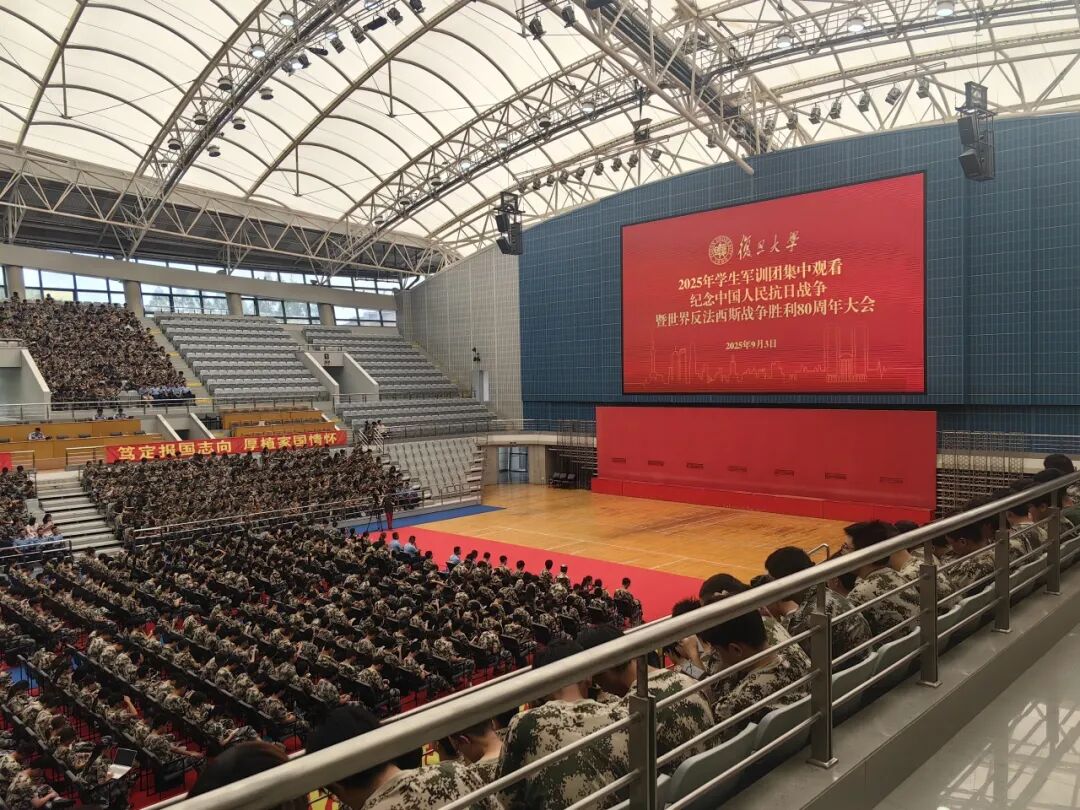 复旦大学上海医学院党政领导、老领导和各学院师生代表500余人在明道楼二楼报告厅共同收看视频直播。2025年军训学生在学校正大体育馆集中收看直播。医学院机关、院所平台、附属医院党委和基层党组织同步设立多个集中收看点,上医师生认真聆听习近平总书记发表重要讲话,收看阅兵式,反响热烈。