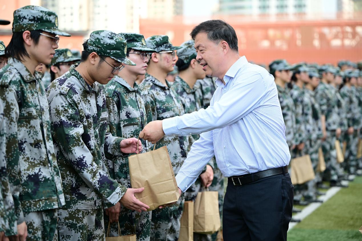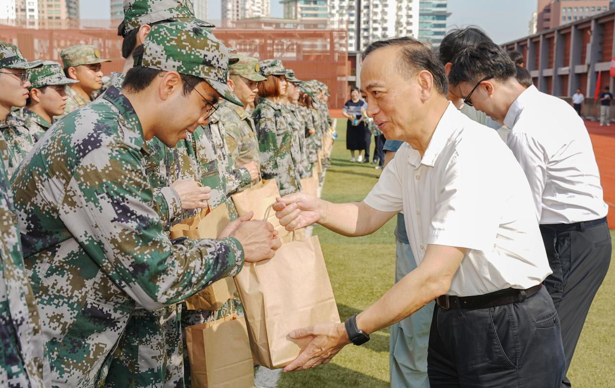 9月1日上午,袁正宏,上海医学院党委副书记杨伟国,党委副书记、纪委书记胡华忠和军训团副团长王闯等对参加2025年军训的学生进行慰问,肯定同学们不畏辛苦、坚持训练,展现出饱满的精神状态和顽强的训练作风。相关单位和职能部处同志陪同慰问。