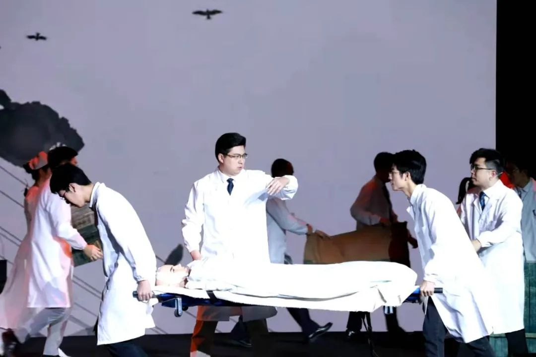 大师精神是最好的感召,以历史和历史人物而创作的大师剧也是非常生动的“四史”学习教育素材。在剧目创作过程中,创作团队精益求精,查阅大量资料,收集一手素材,大师剧剧本前后修改数十稿,精心打磨出品。今年9月,大师剧演职人员招募令一经发出,应者云集。最终,医学院师生和附属医院医务工作者40余人参演,在近三个月的时间里,演职人员们放弃周末休息时间,开启集中排练,逐幕场景推敲,不断完善每句台词、每个眼神、每步走位……力求呈现最完美的舞台效果。