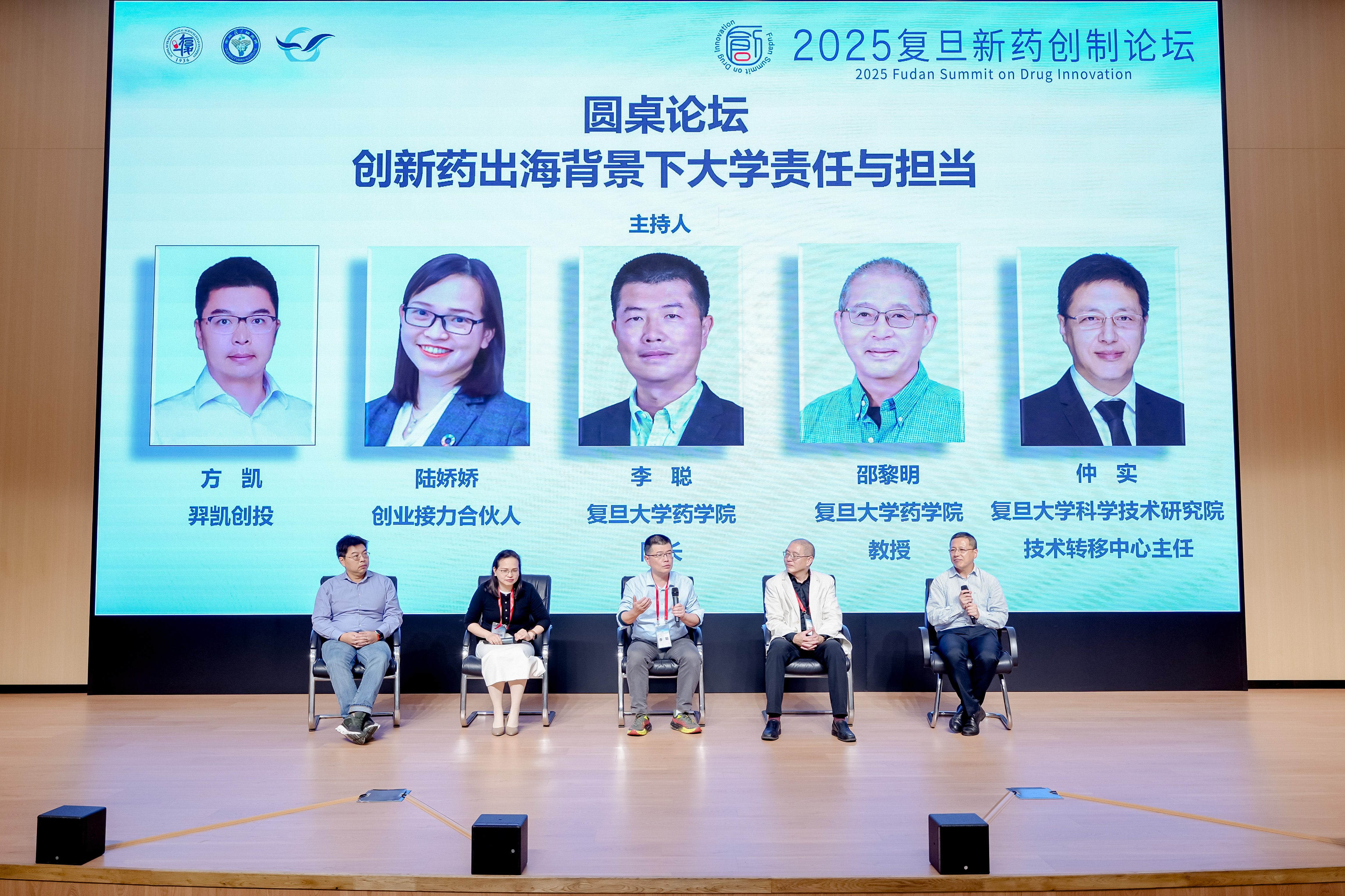 当天下午,李聪主持“创新药出海背景下大学责任与担当”主题圆桌论坛。羿凯创投董事长方凯、创业接力合伙人陆娇娇、复旦大学药学院教授邵黎明和复旦大学技术转移中心主任仲实作为与会嘉宾,围绕大学在人才培养、源头创新与成果转化中的核心作用展开讨论。专家一致认为,破解当前创新药出海瓶颈,需构建“科学家+投资人+产业化专家”的铁三角模式,强化源头创新质量与专利布局,优化成果转化机制,推动高校从“论文导向”向“价值导向”转变,以多维协同生态助力中国创新药成功走向全球。