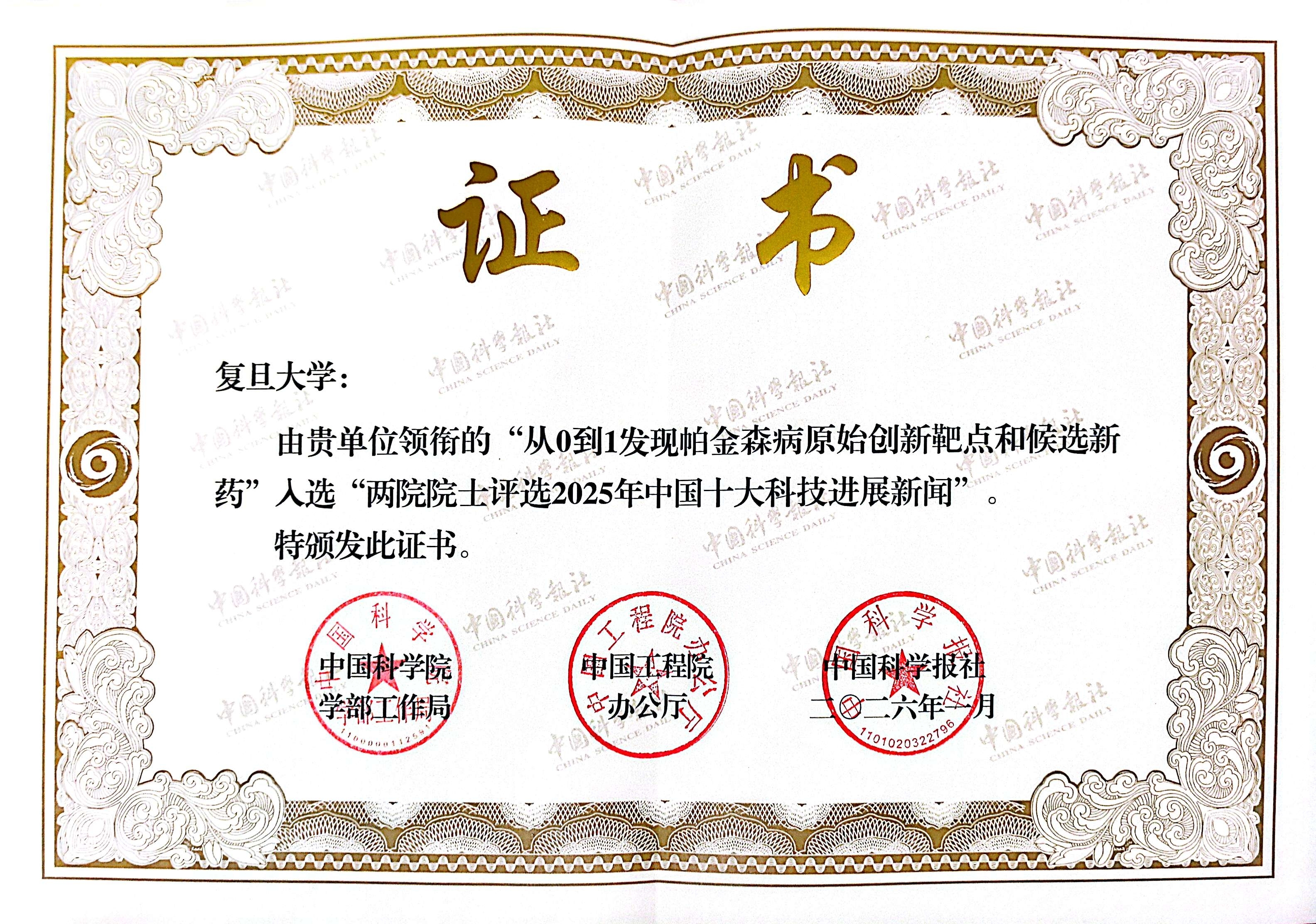 复旦上医郁金泰团队入选!2025年中国十大科技进展新闻