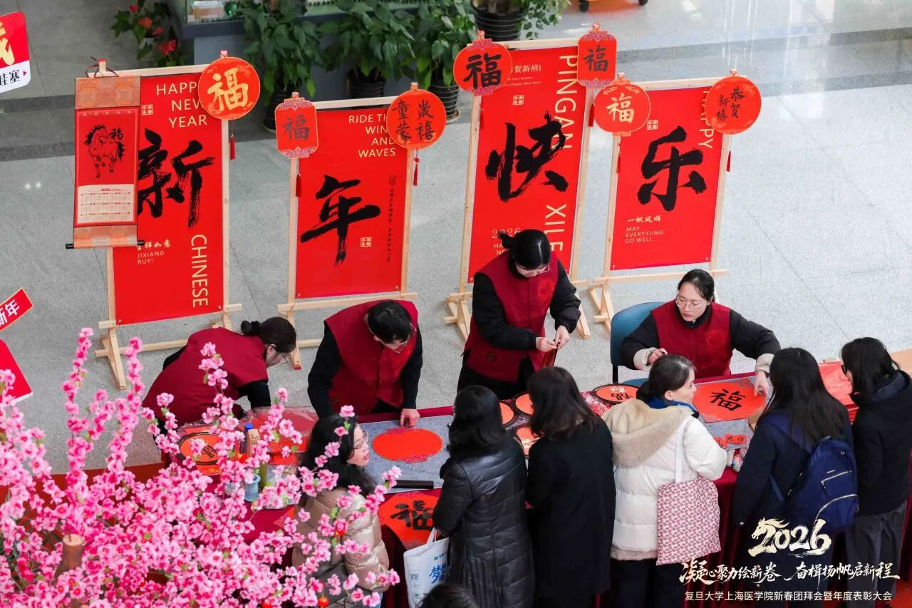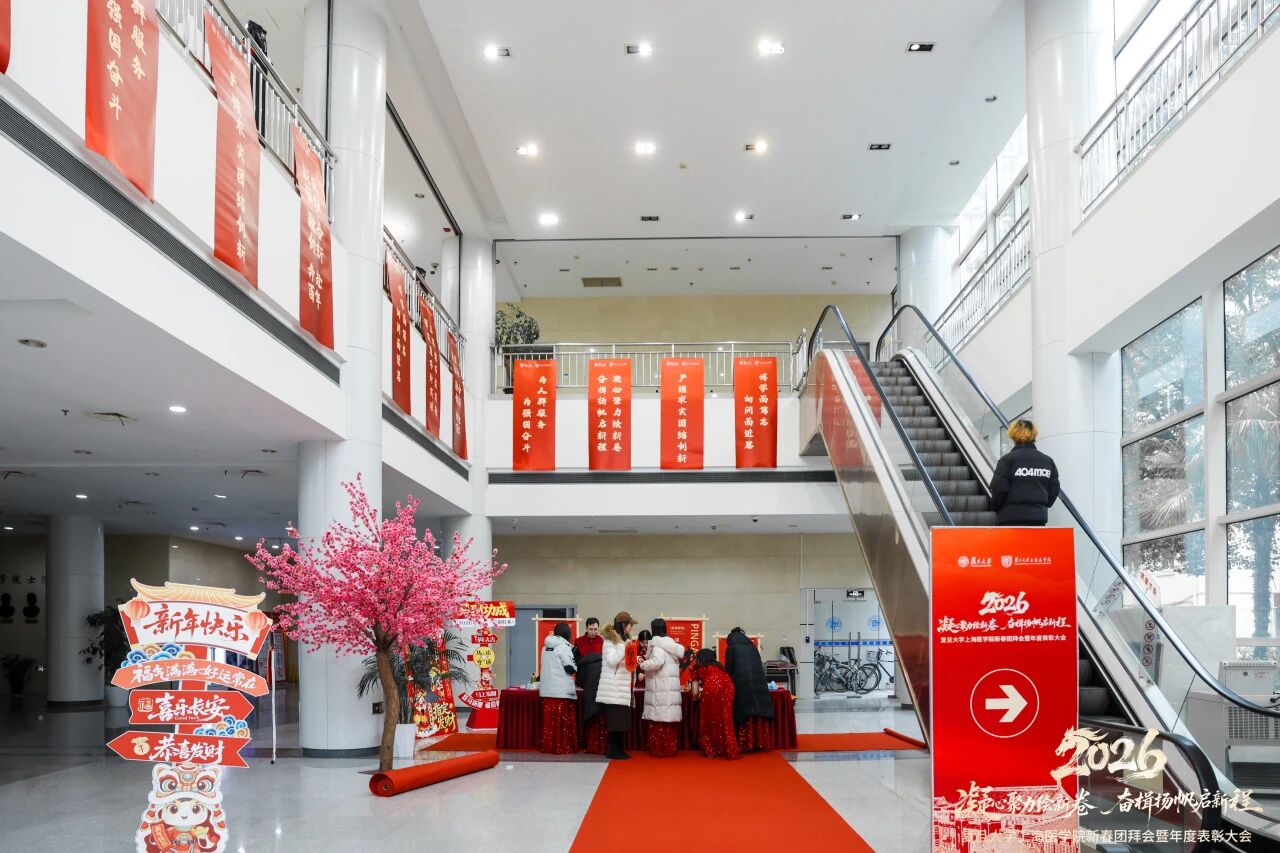 红梅报春,福满枫林。近日,校园内处处温暖祥和,主干道两侧换上了崭新的红色道旗,明道楼会场外灯笼高挂、福字点缀。2026131日下午,复旦大学上海医学院在枫林校区明道楼隆重举行2026年新春团拜会暨年度表彰大会。