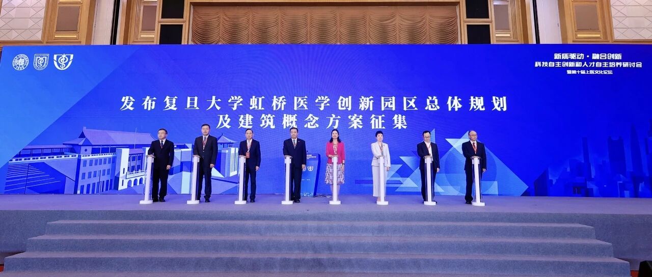 开幕式上,复旦大学虹桥医学创新园区总体规划及建筑概念方案启动全球公开征集。学校及医学院领导金力、许征、袁正宏、吴凡、杨伟国、朱同玉、徐军、胡华忠共同推杆启动,标志着这一医学教育科研新高地及服务卫生健康行业和生物医药产业发展的新载体正式进入建设筹备阶段。园区将对标世界顶级医学中心,联动周边医疗和产业资源,合力打造医学拔尖创新人才自主培养、医学前沿科技创新策源、生物医药产业发展集聚、国际医疗高水平服务开放等四大核心功能,为上海建设全球生物医药研发经济新地标提供核心引擎,为国家科技自立自强构建战略科技力量。