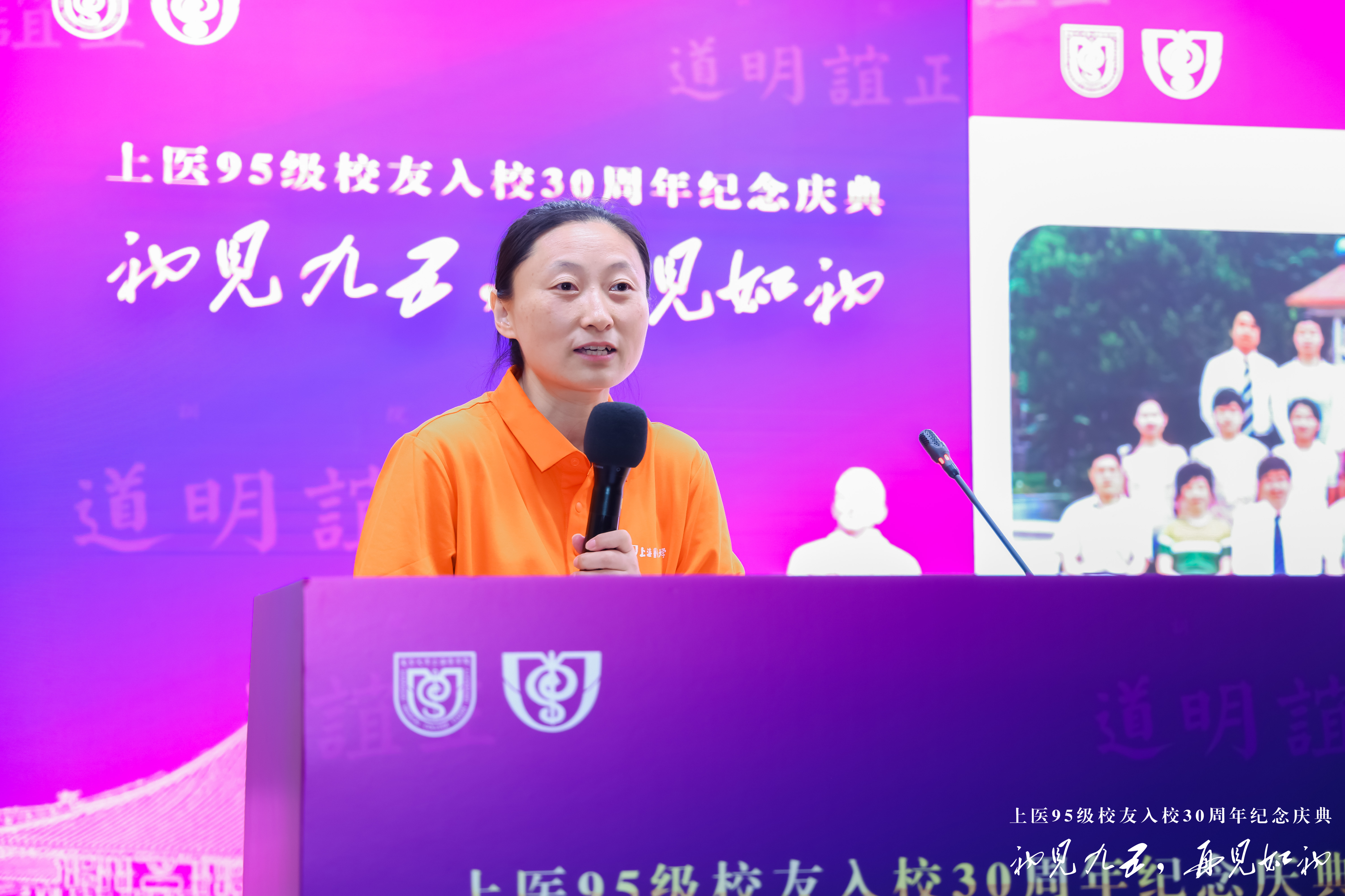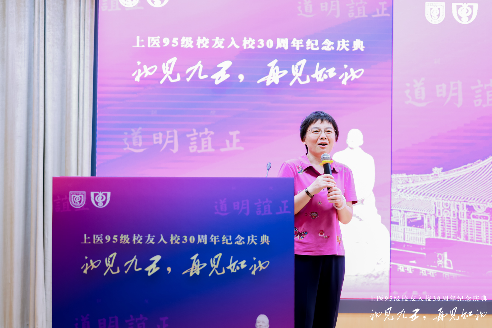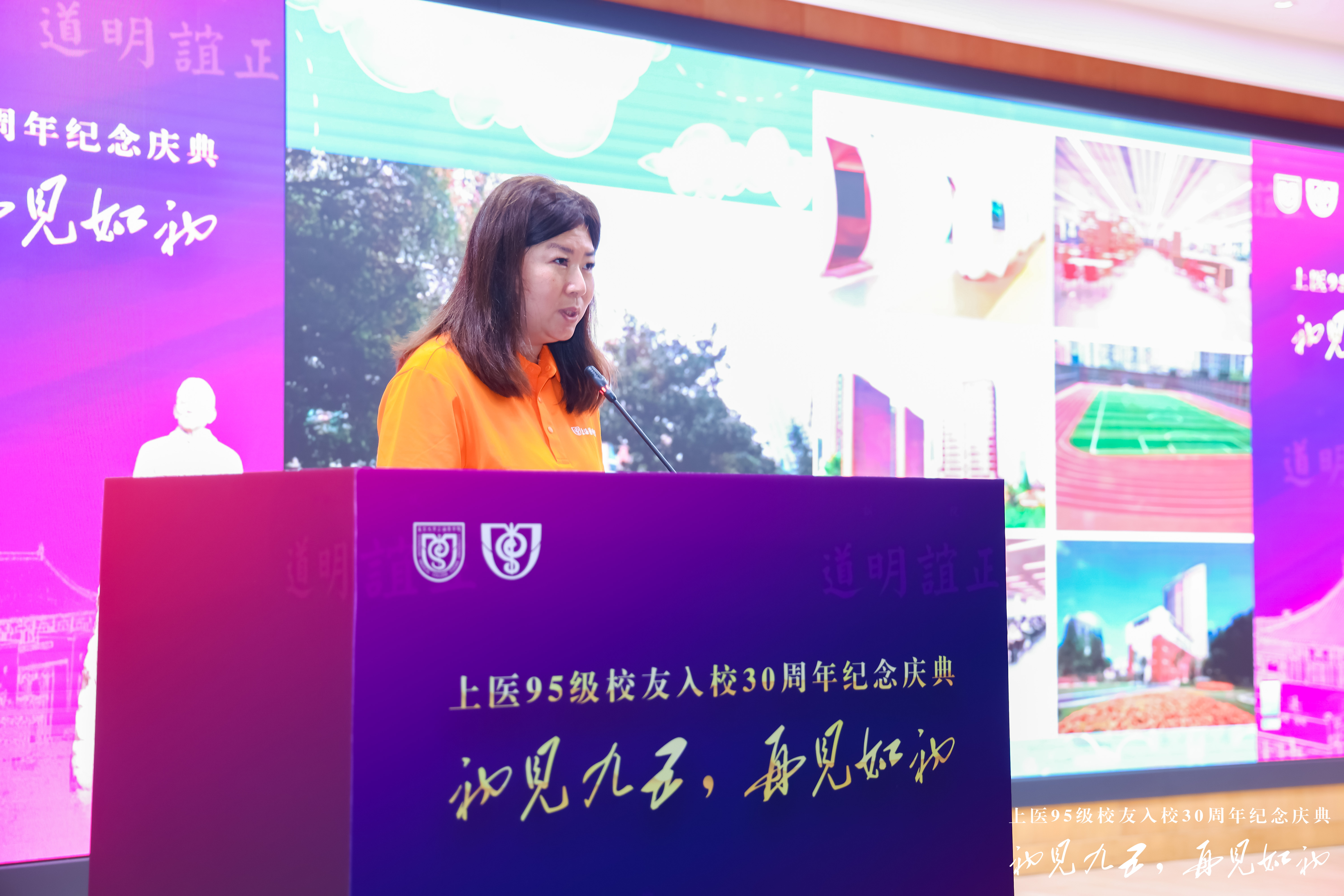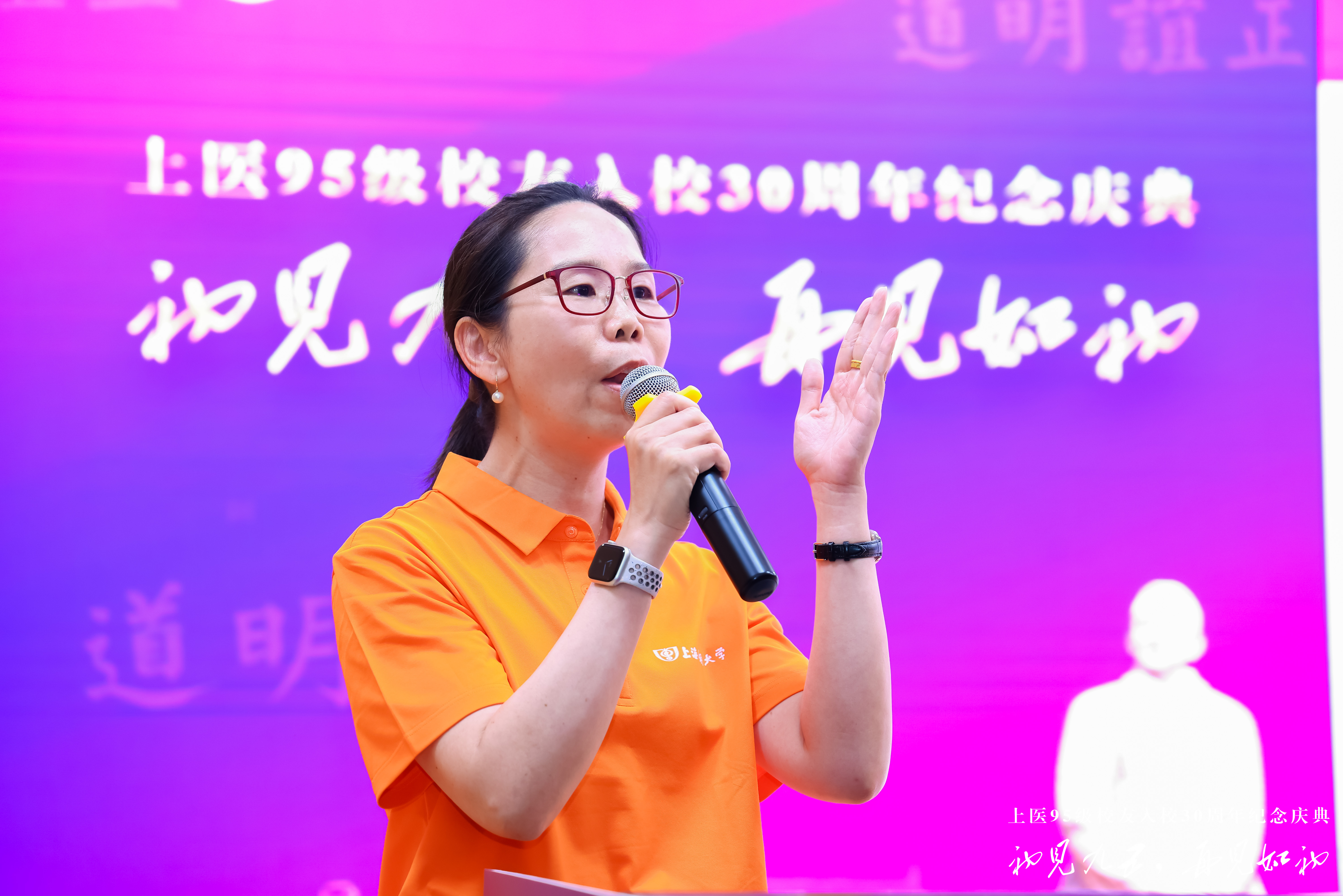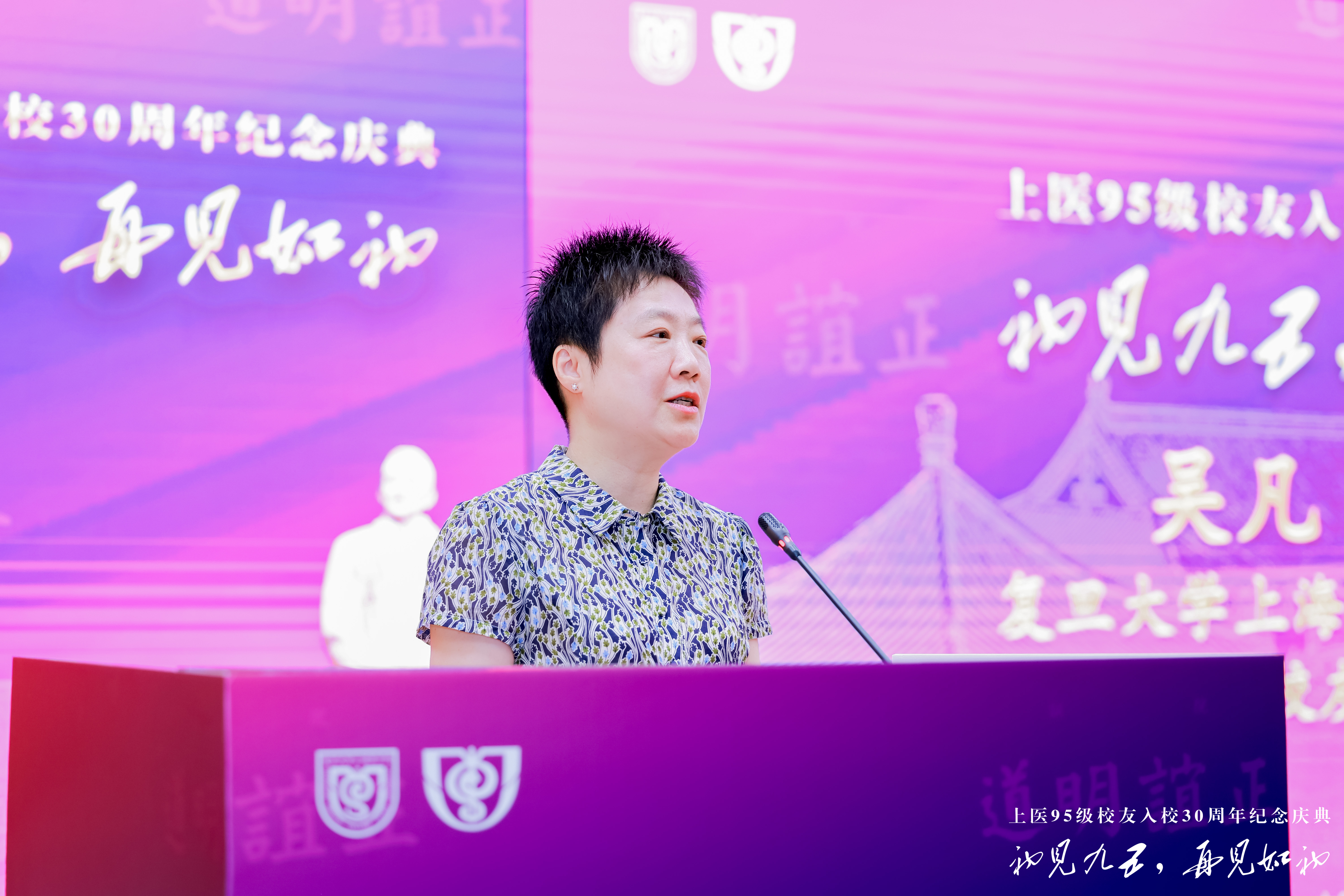 活动在热烈而温馨的氛围中拉开帷幕。吴凡代表复旦上医和校友会向阔别多年的校友们致以最热烈的欢迎,赞赏了95级校友在过去三十年取得的成就,感谢校友们始终关心和支持母校发展。她详细介绍了学校在拔尖创新人才培养、高素质教师队伍建设、科技文化创新体系构建、国际国内交流合作深化以及校园环境优化等方面的最新进展,目前复旦上医正积极把握三方共建托管历史机遇,依托综合性大学优势,争取早期建成中国特色世界一流医学院,这是全体上医人矢志不渝的共同目标。吴凡深情祝福大家生活顺遂、幸福美满,并向全体校友发出盛情邀约,共襄2027年母校百年华诞。
