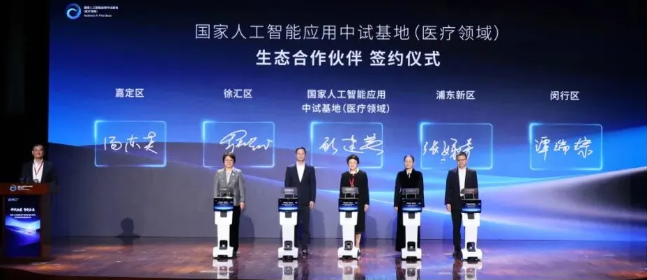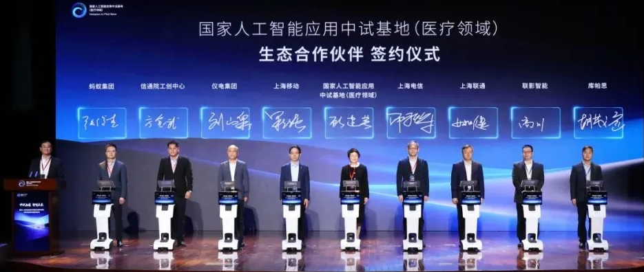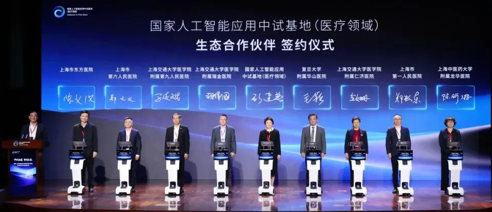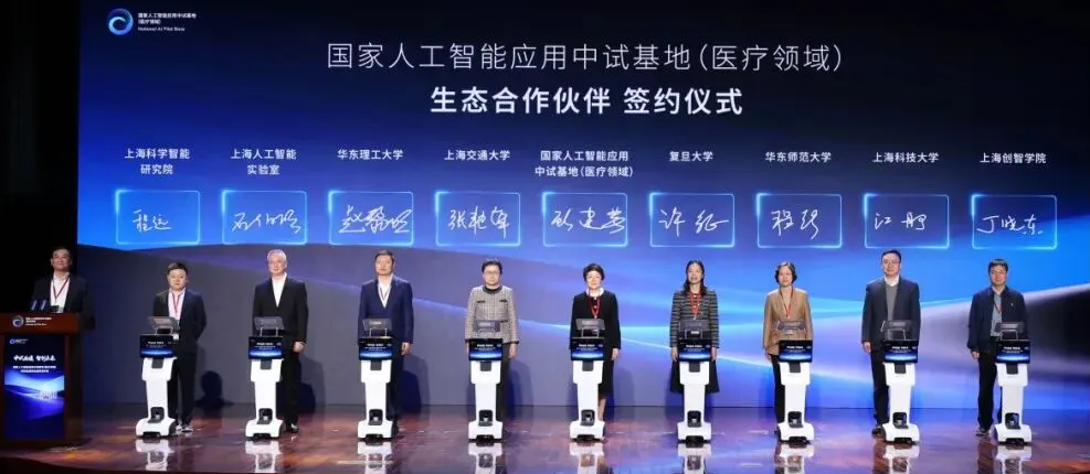 当天,国家人工智能应用中试基地(医疗领域)与上海市徐汇区、浦东新区、闵行区、嘉定区4个区,复旦大学、上海交通大学、上海人工智能实验室等8家高校及科研院所,瑞金、仁济、华山等28家医院,上海仪电、联影智能等20家领军企业完成生态合作伙伴签约,全面凝聚政产学研用协同创新合力,推动医疗AI技术规模化落地。